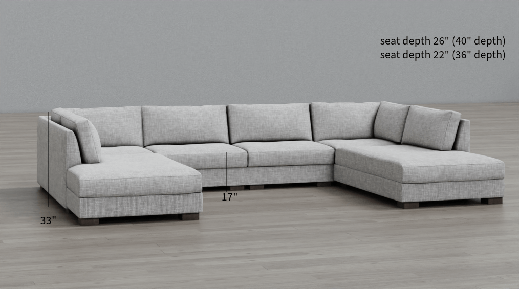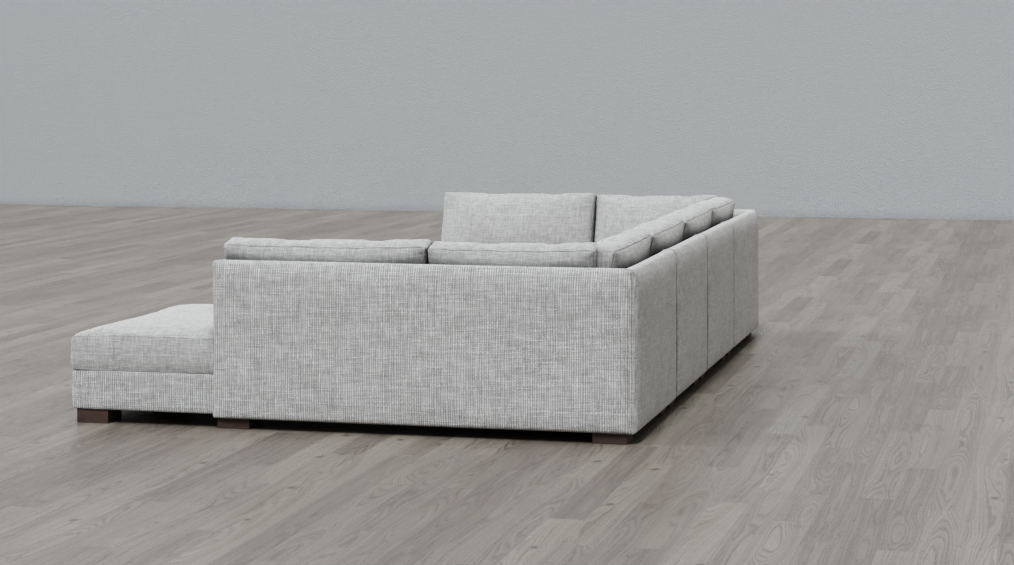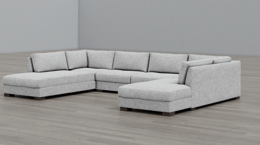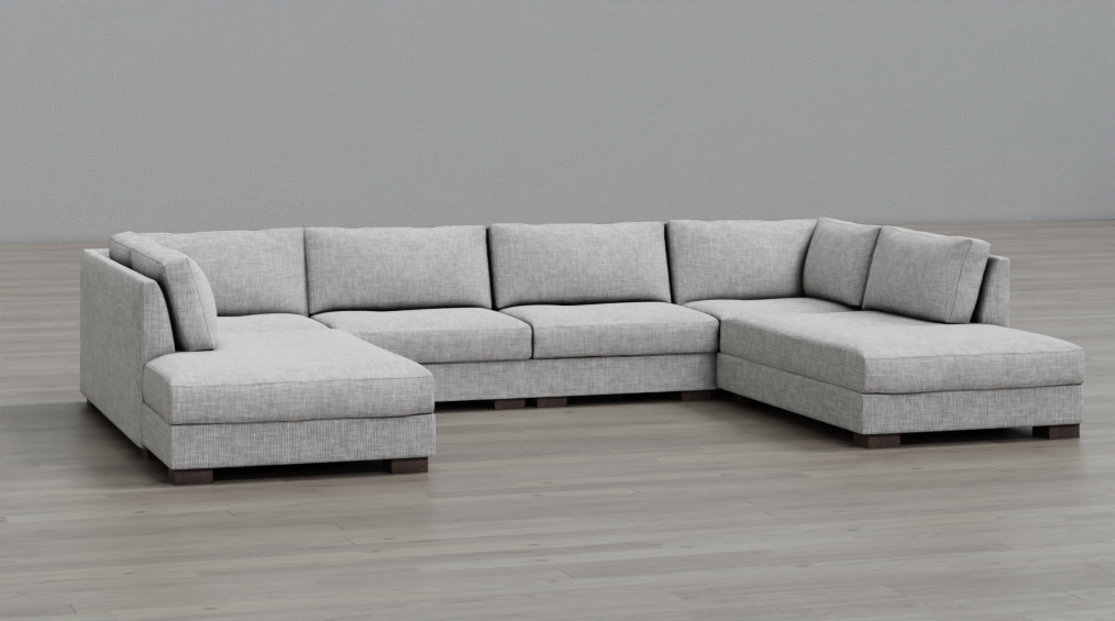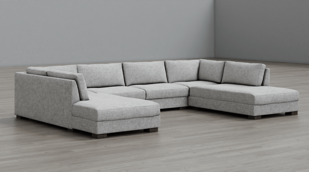 minimalist design with practical use . both side chaise are very good for our tv room . we also custom ottoman from sofa studio to put in middle for lounging movie nights.