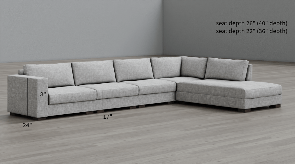 chaise sectional for our family room. chaise is now our favourite spot in the house , so comfortable and well designed to not give a close look in area. Our Family is tall and we as looking for deep seating option , we got this sofa in 40 inches deep frame for enough seating space for lounging and sitting.