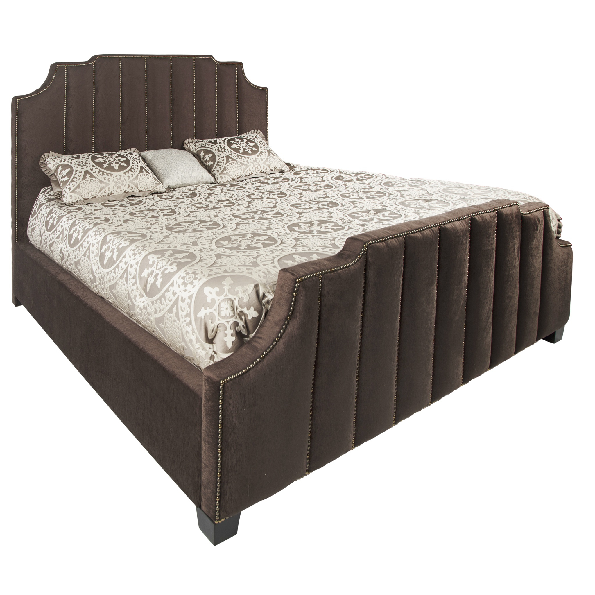 Brown Color Upholstery Bed on Solid Wood Frame .